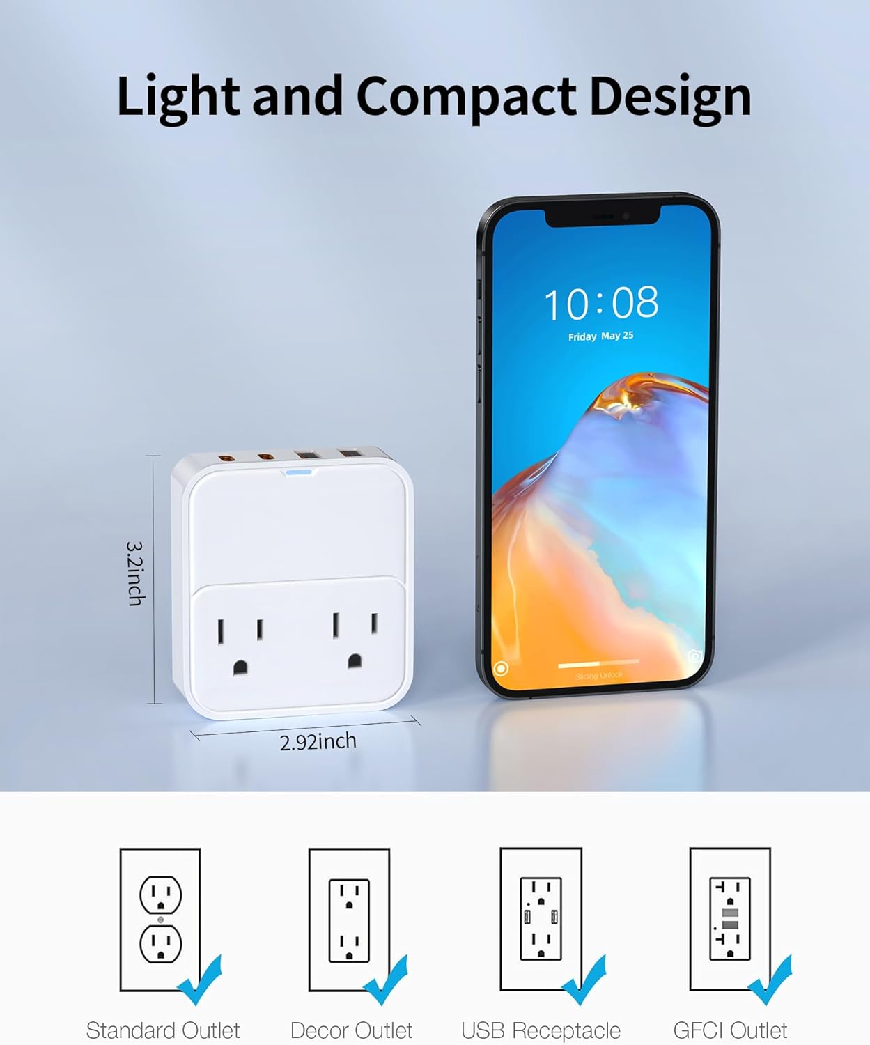 Small and Portable – VPSUN multi usb plugs for wall outlet has no extension cord, the size is 3.2in lon and 2.9in wide, which is smaller than as a mobile phone, the design is compact and lightweight, can be put into luggage and backpacks, no need to carry extra charger plugs, perfect for travel and business