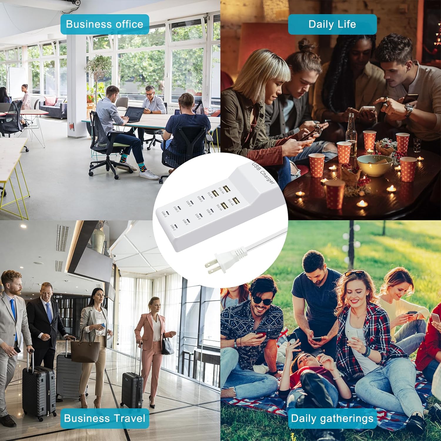 Lightweight design: The compact design of the USB hub usb charger block multiple ports provides a convenient power distribution method for workbenches and floor standing applications, making it very suitable for desktop applications such as home, school, office, gatherings, and tourism. The lightweight design makes it easy to carry.
