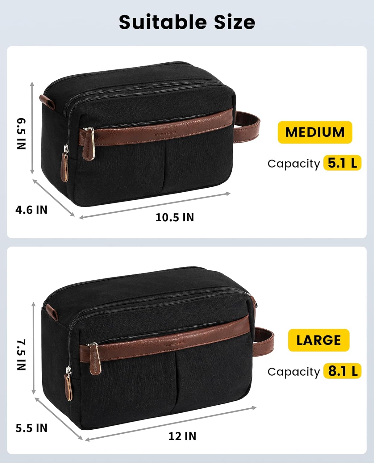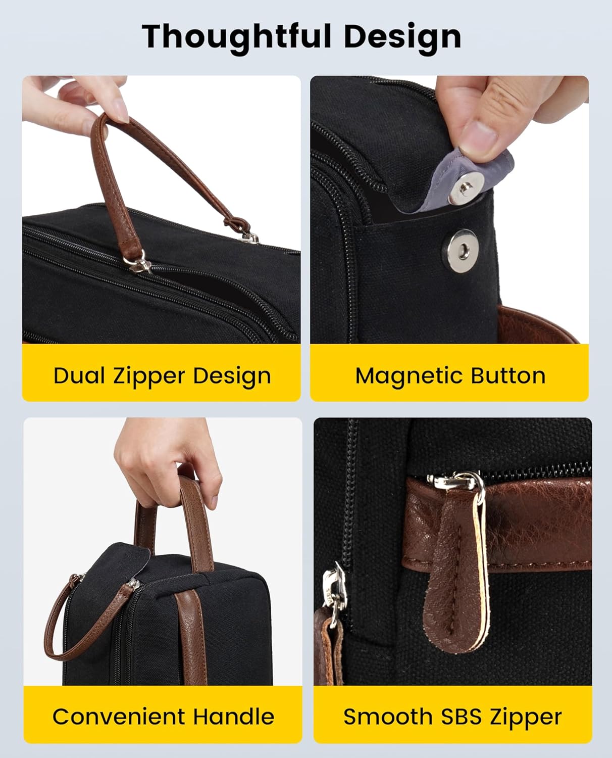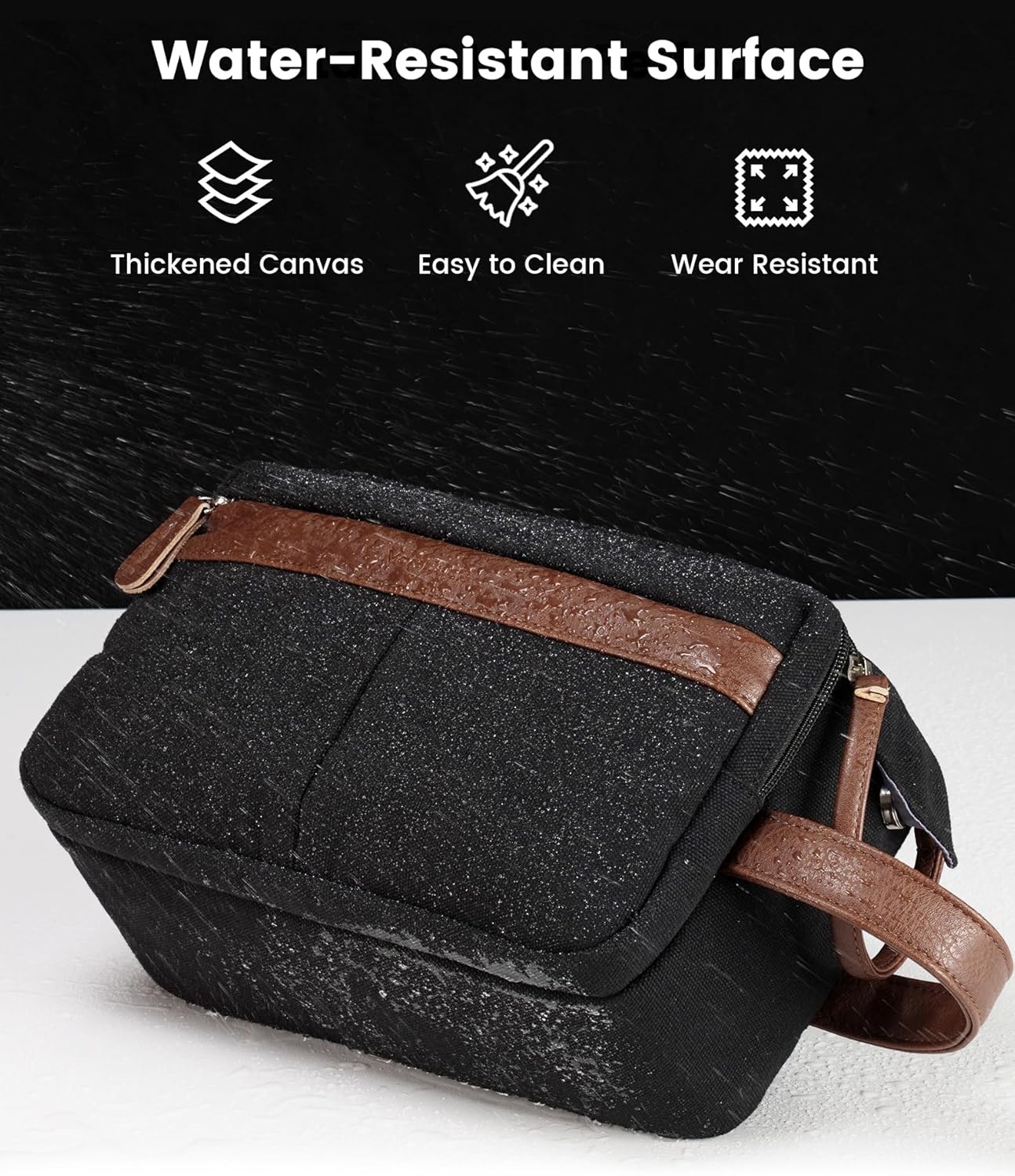 Quality Material: Made of thickened canvas fabric, this travel toiletry bag holds up well to daily use. The water-resistant exterior shrugs off accidental splashes—just wipe clean with a damp cloth to keep it looking fresh