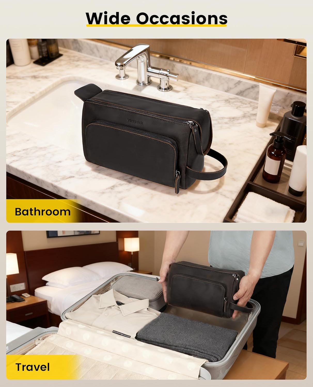 Versatile Usage: Suitable for both daily use and travel. This men’s toiletry bag can be used as a shaving bag, cosmetic bag, makeup bag, hygiene bag, groomsman bag, etc. Furthermore, the leather toiletry bag comes with a matching canvas storage bag, making it a thoughtful choice for birthdays or any special occasion