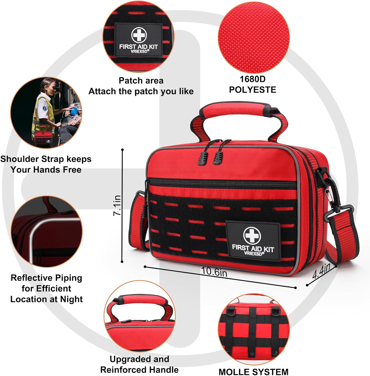 ESSENTIALS FOR EMERGENCY – Vriexsd large first aid kit contains a total of 450 pieces of professional first aid supplies, making it the perfect emergency kit for businesses and homes of any size. For example, you can use the essentials from the emergency bag to care for minor scrapes, burns, wounds, etc