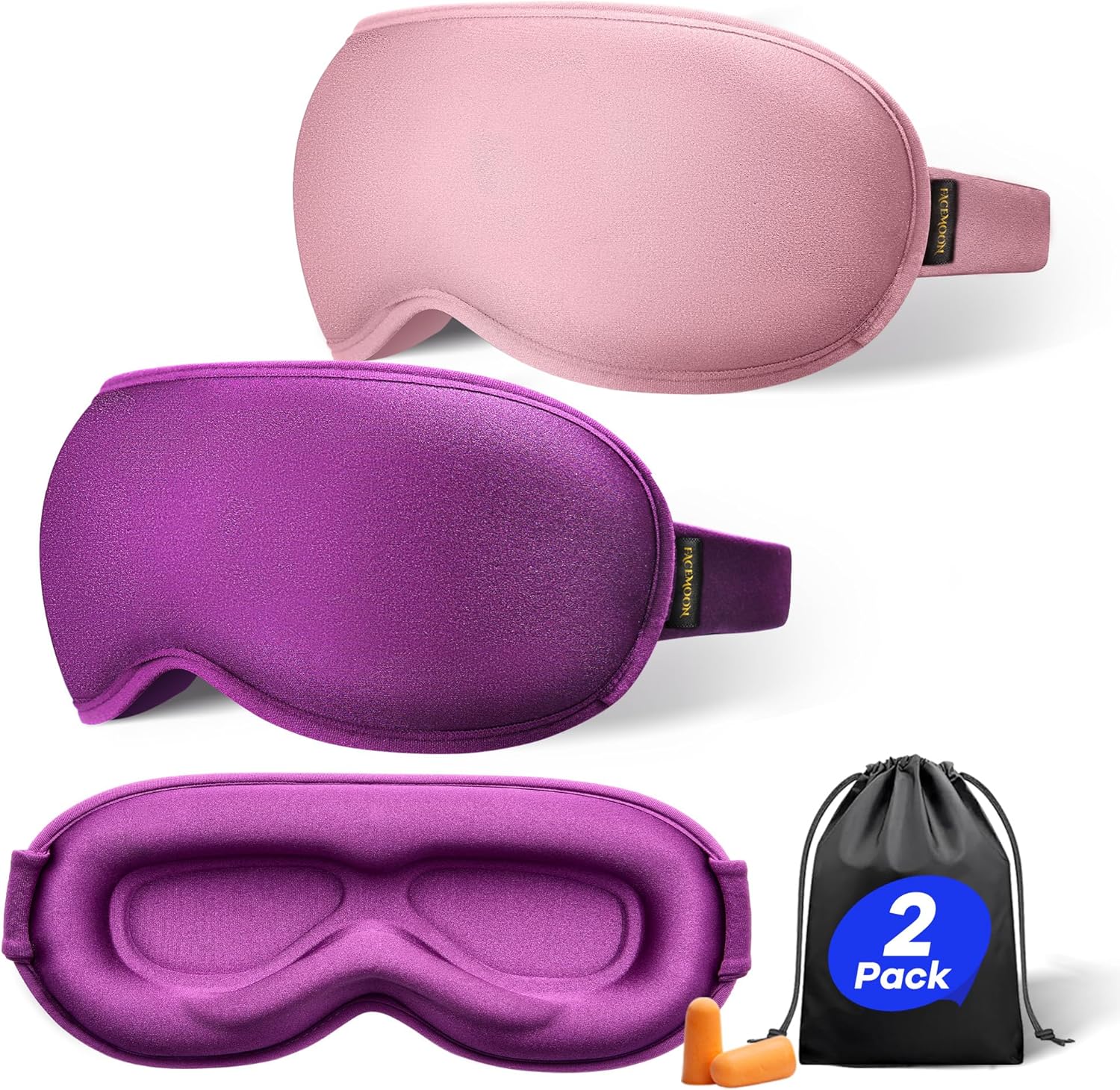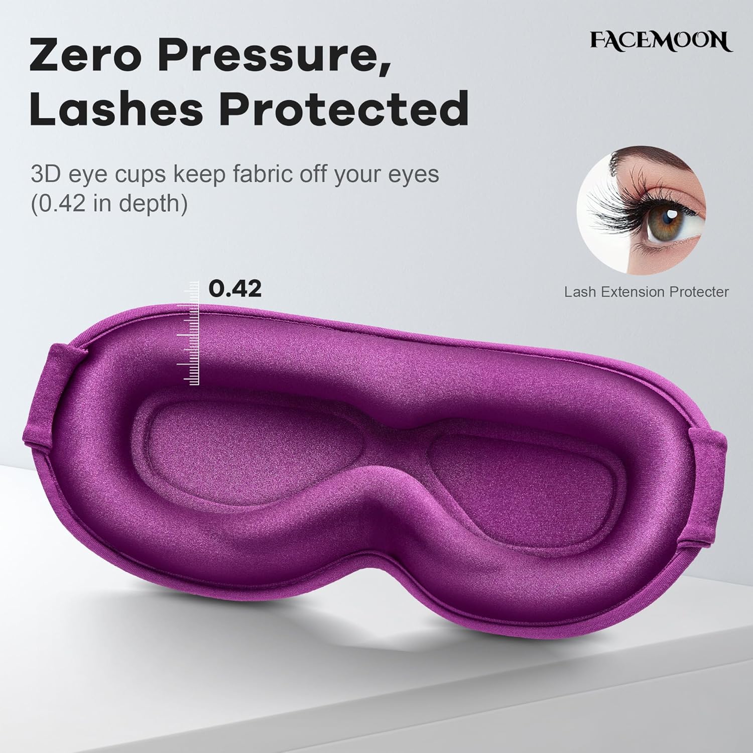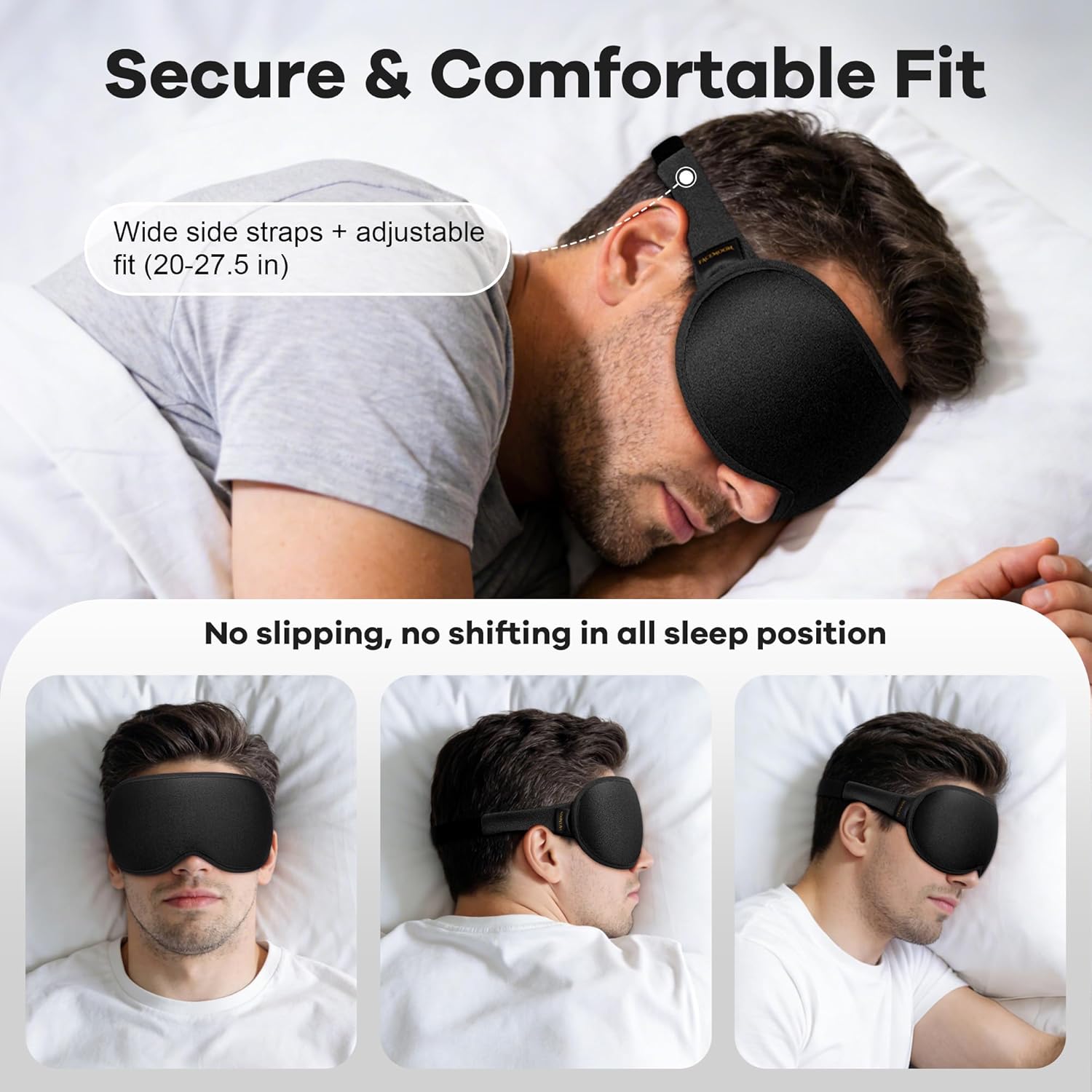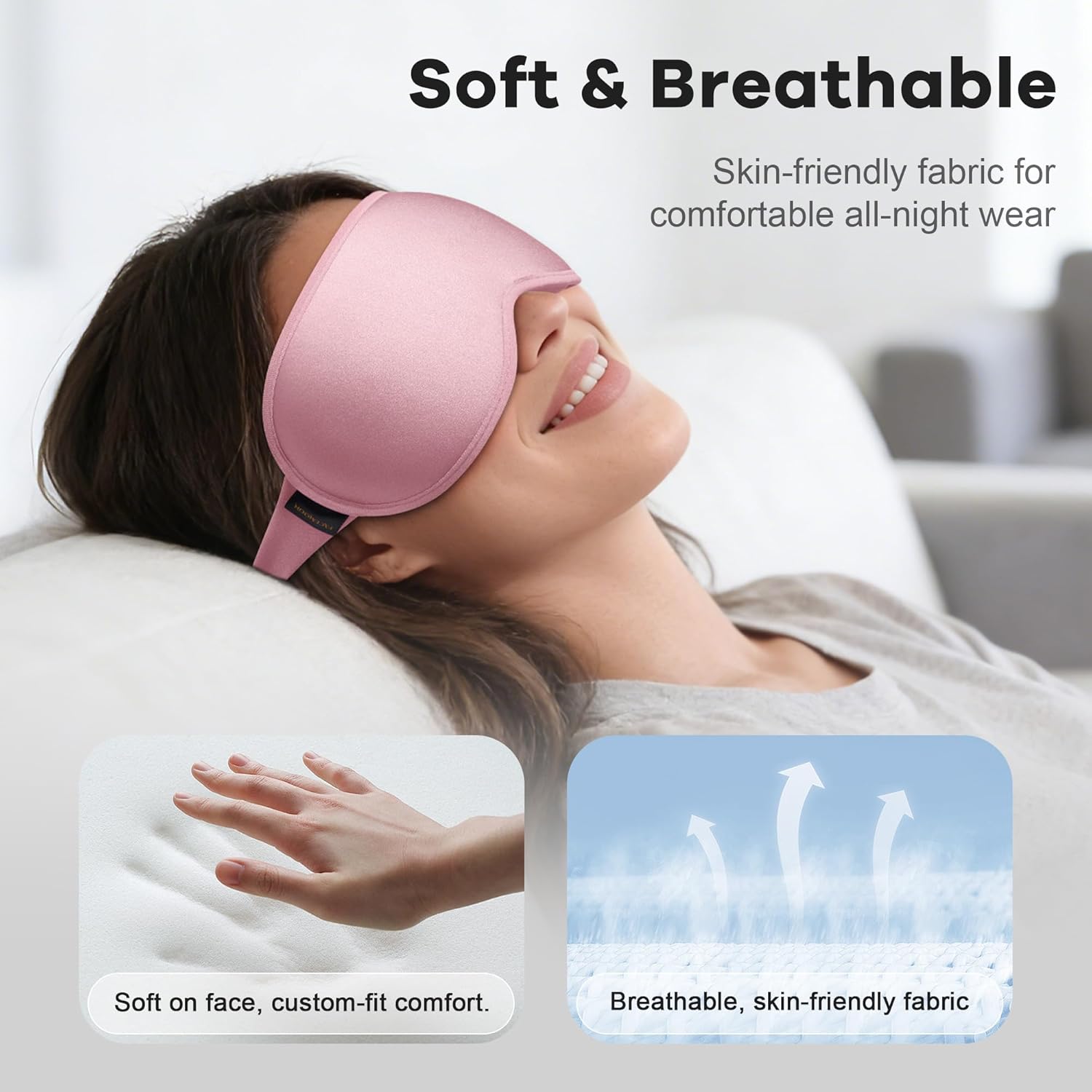 𝗗𝗘𝗘𝗣 𝗘𝗬𝗘 𝗖𝗨𝗣𝗦, 𝗭𝗘𝗥𝗢 𝗘𝗬𝗘 𝗣𝗥𝗘𝗦𝗦𝗨𝗥𝗘:Deep contoured eye cups protect your lashes and eyes. The spacious 3D design keeps the sleep eye mask away from your eyelids, allowing zero pressure and complete freedom to blink—no worries about smudging makeup.