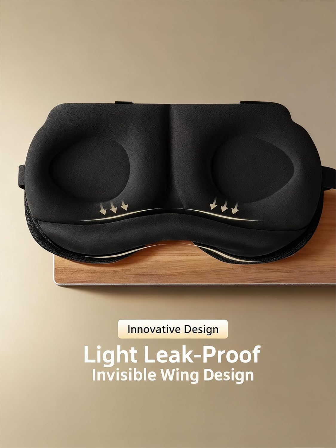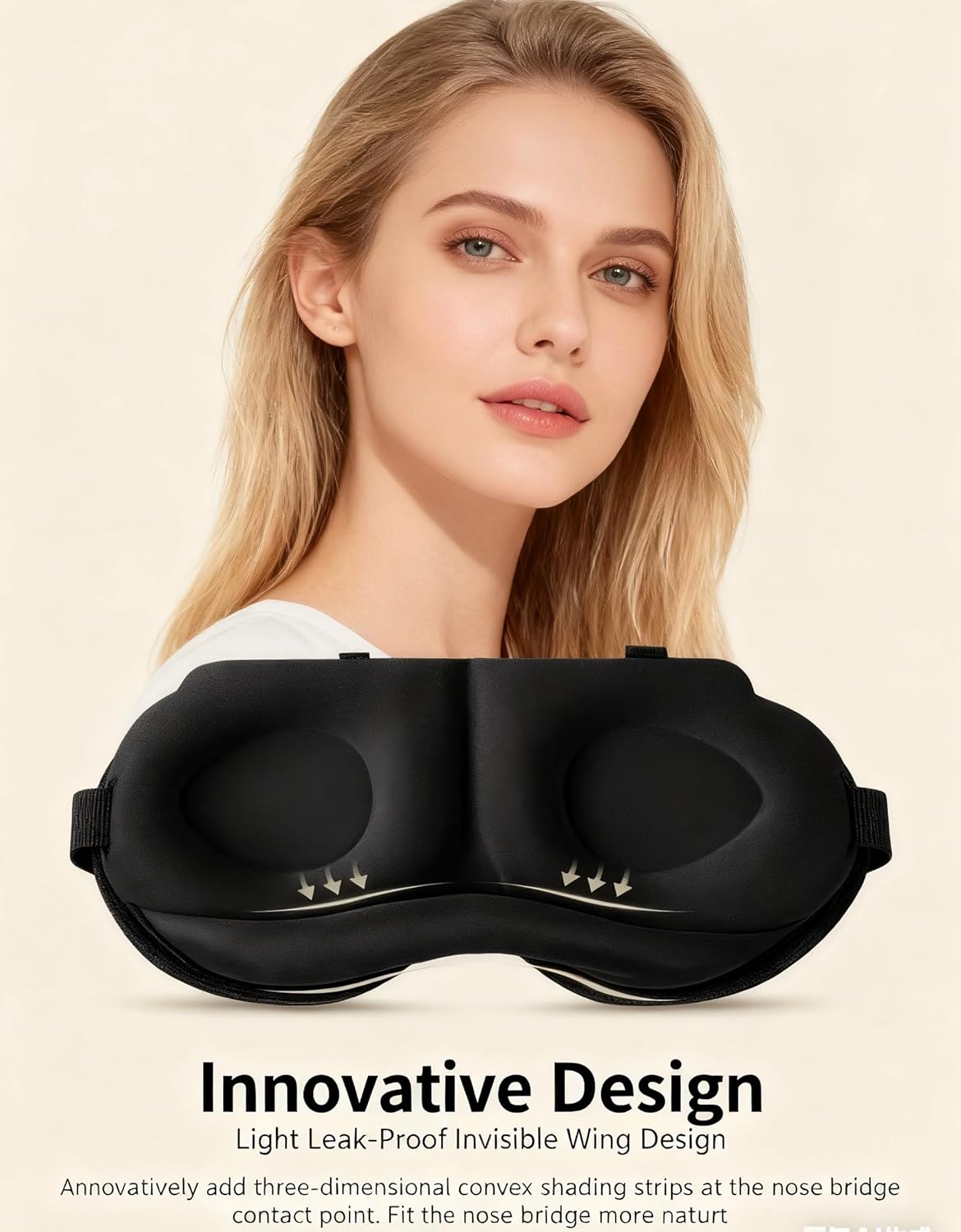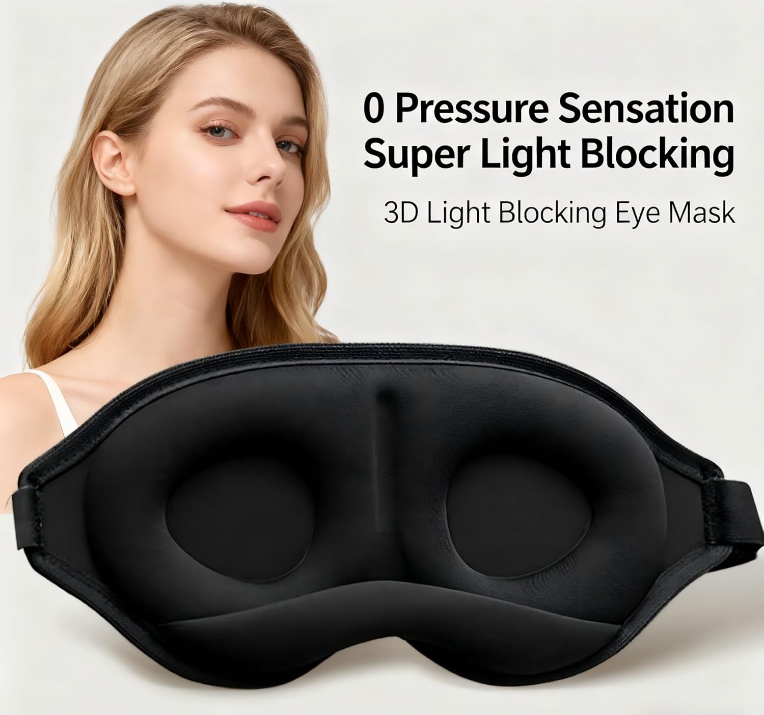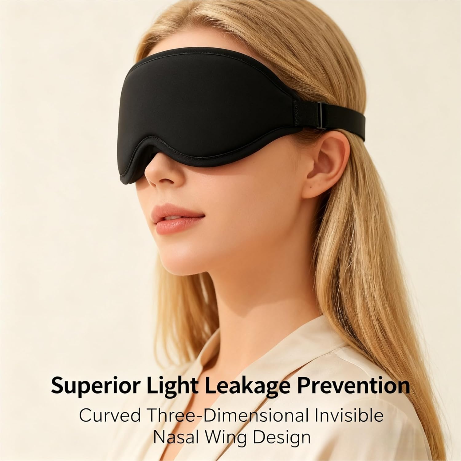 3D Contoured Eye Mask – Ergonomic design with curved eye cavities fits your eyes without pressure, making this the ideal sleep mask and eye mask for sleeping