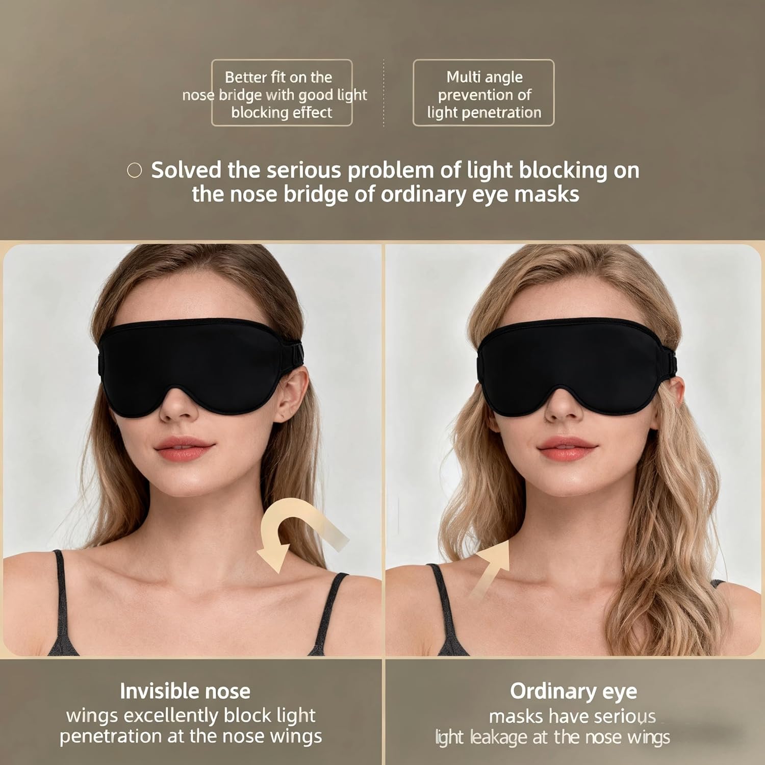 Total Darkness for Better Sleep – Nose bridge strip blocks light leakage, ensuring complete blackout. Perfect eye masks for sleep and sleeping mask for deep rest