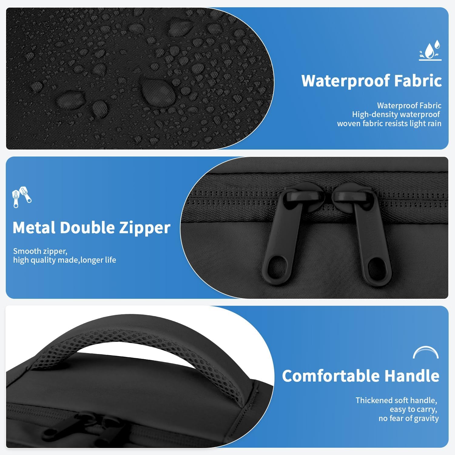 Large Capacity & Multiple Pockets: The travel backpack designed with multi functional pocket. It has main pocket, wet clothes pocket, interior pocket, side pockets, laptop compartment, organized pocket, front pockets making your items organized and easy to find. Separate laptop compartment of laptop backpack holds 15.6 inch laptop and 12.9 ipad. The built-in elastic bands of main pocket keep your clothes from falling